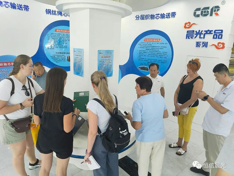 近日,山東晨光膠帶有限公司迎來了一次具有重要意義的國際交流場景——來自世界各地的客戶蒞臨參觀指導!來公司參觀的俄羅斯、印度和南非客戶,他們對山東晨光阻燃輸送帶在國際地位上表示了高度關注和認可。